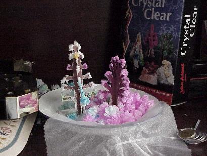 | picture 6: crystal leaves grown on paper tree | picture 7: crystal autumn, fallen from paper branches |